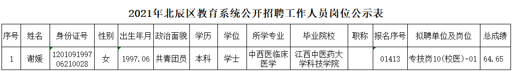 附件:2021年天津市北辰区教育系统公开招聘工作人员岗位公示表