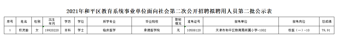 天津市和平区2021年教育系统事业单位面向社会第二次公开招聘拟聘用人员第二批公示