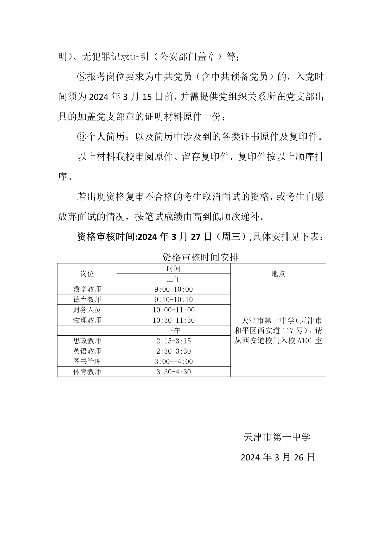 - 关于2024年滨海新区泰达公办中小学公开招聘教职工体检、政审公