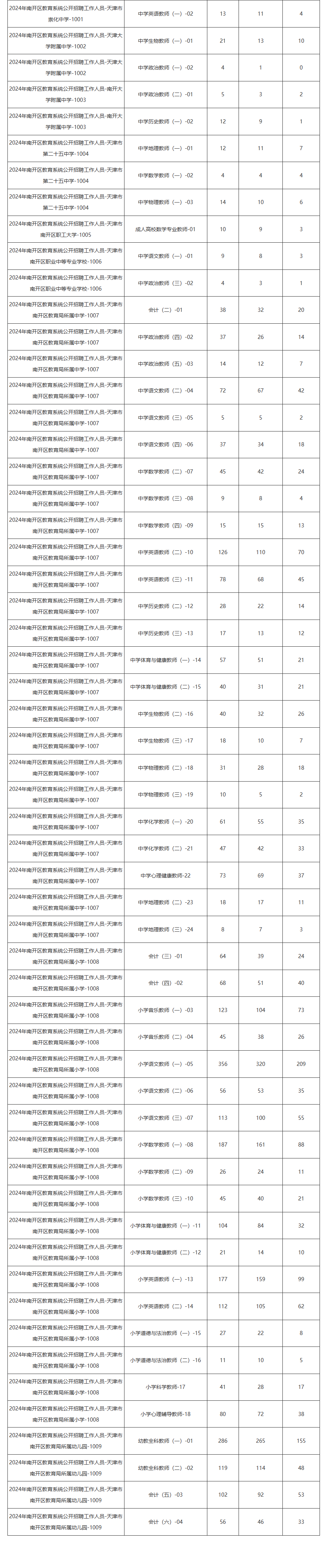 2024年南开区教育系统公开招聘工作人员报考情况统计(统计时间:2024年6月20日上午10点)