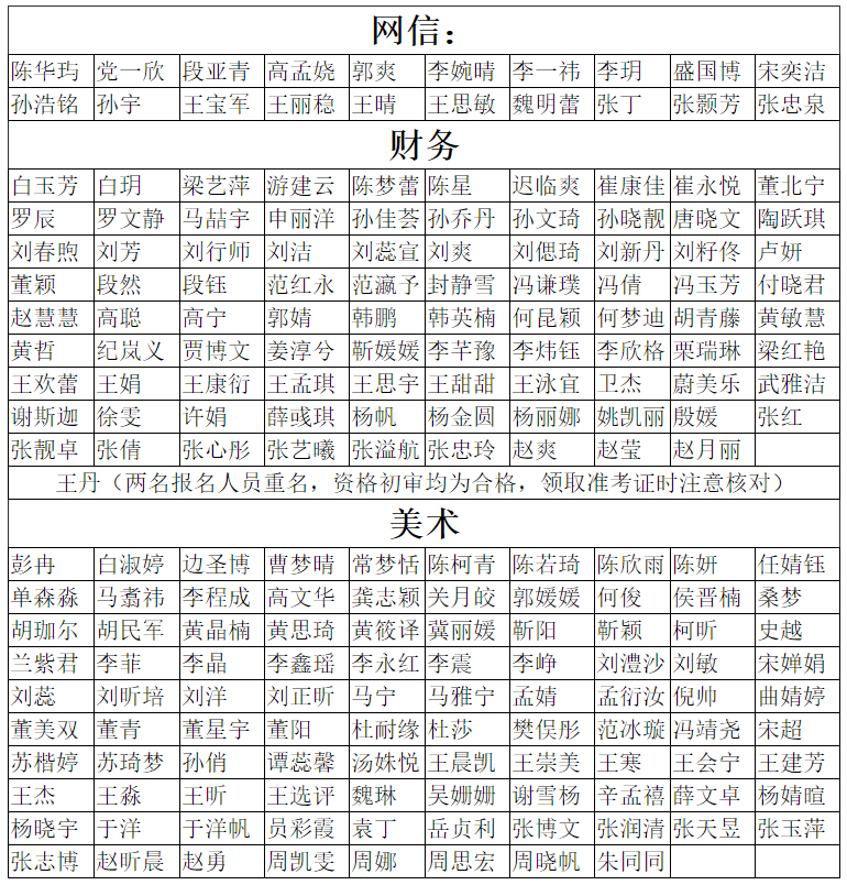 天津市复兴中学2022年公开招聘教师资格初审合格参加笔试人员名单