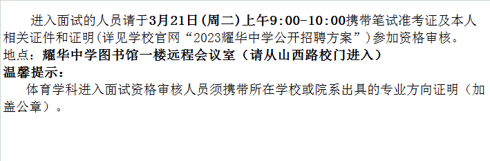天津市耀华中学2023年公开招聘笔试成绩