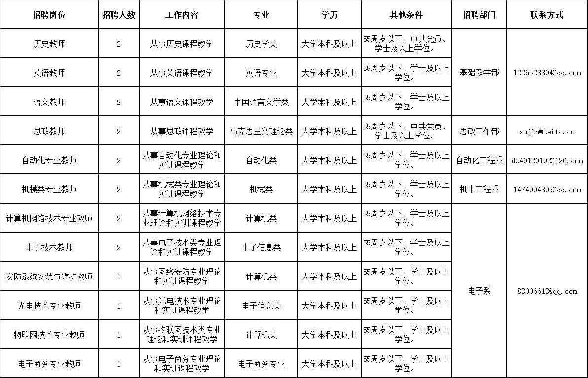 本次招聘涉及12个岗位,主要从事教育教学等工作。具体条件如下: