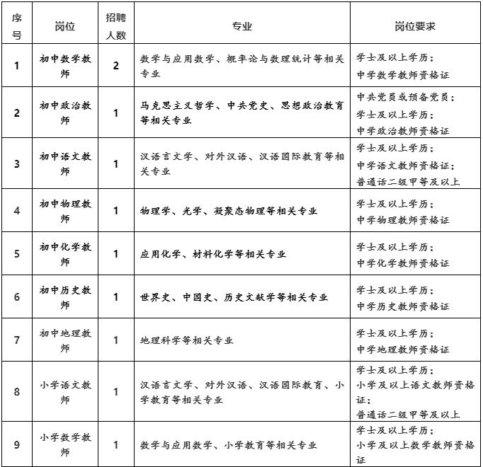 因学校发展及提升办学层次所需,现诚聘中小学教师若干。