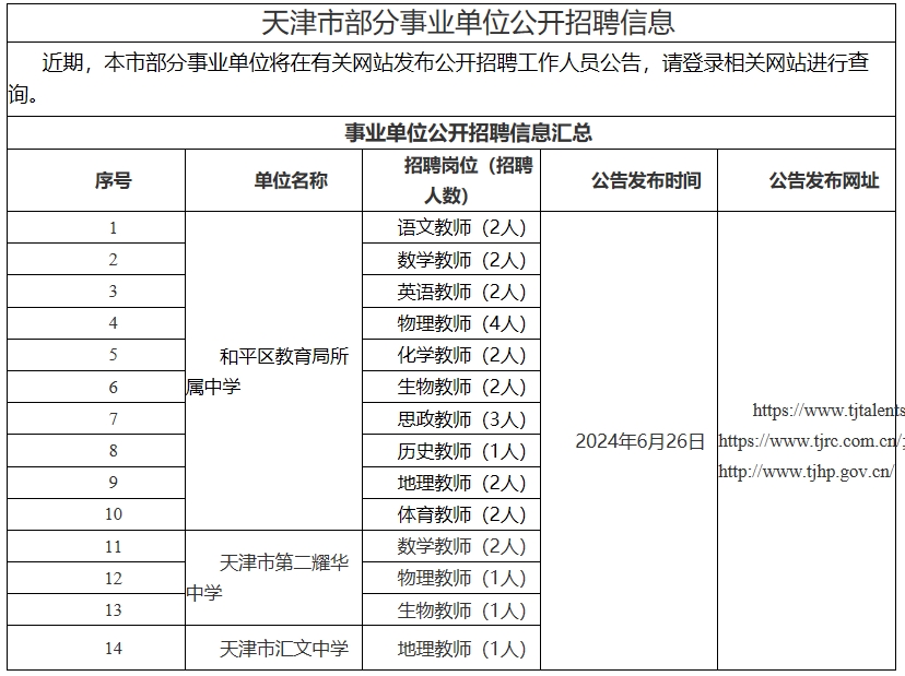 天津市实验中学2024年高层次教师公开招聘1人实施方案(博士岗