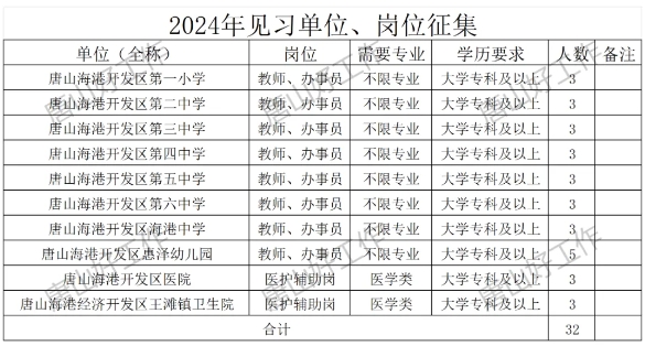 唐山海港经济开发区2024年度招聘32名见习人员的通知