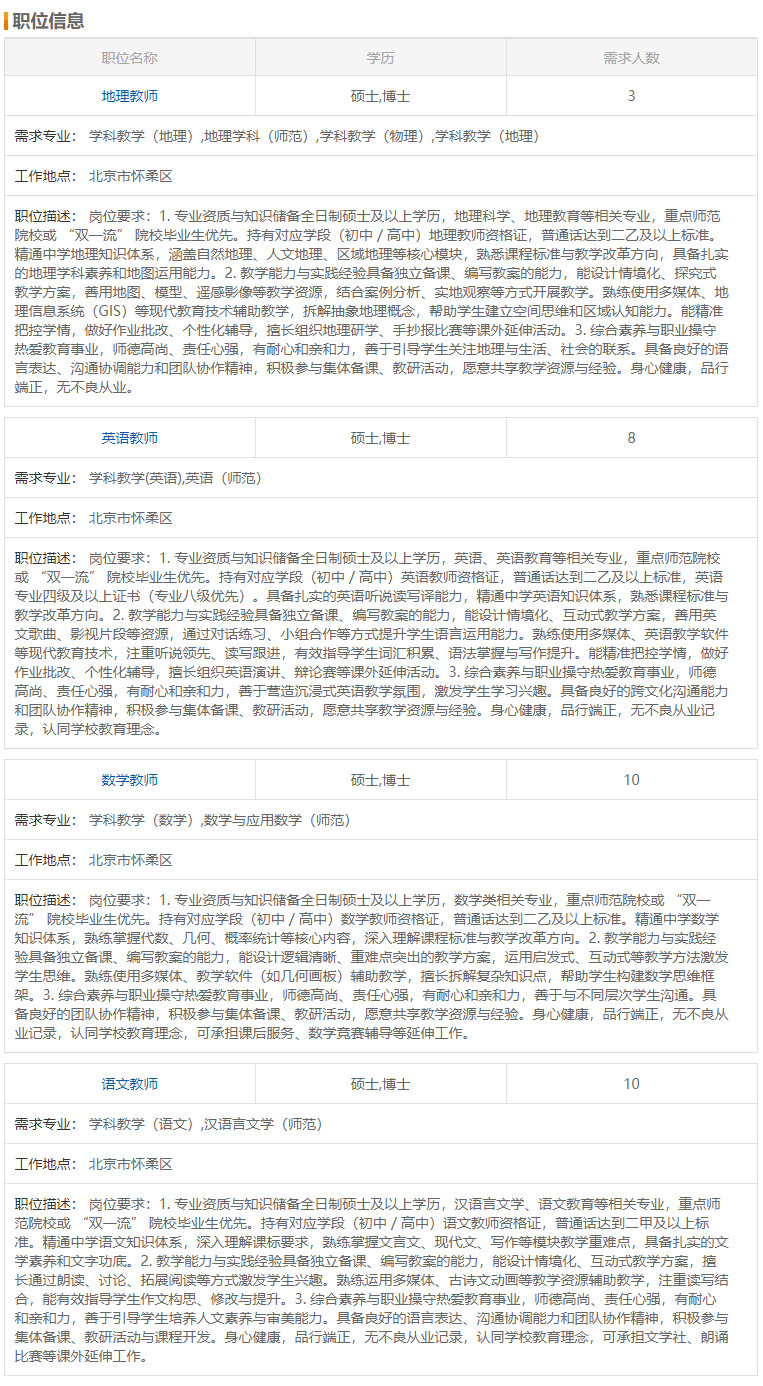 北京第三实验学校招聘