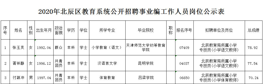 附件:2020年天津市北辰区教育系统公开招聘工作人员拟聘用人员公示表