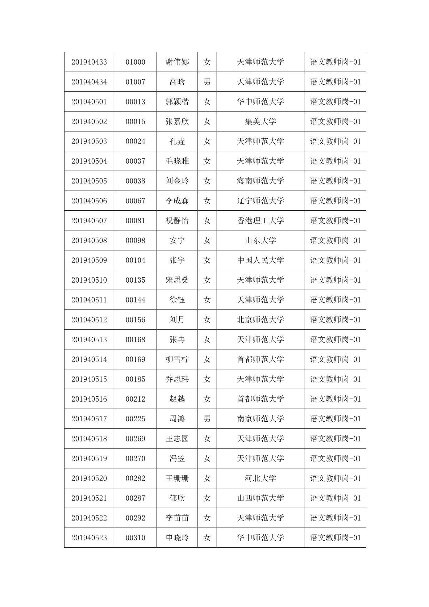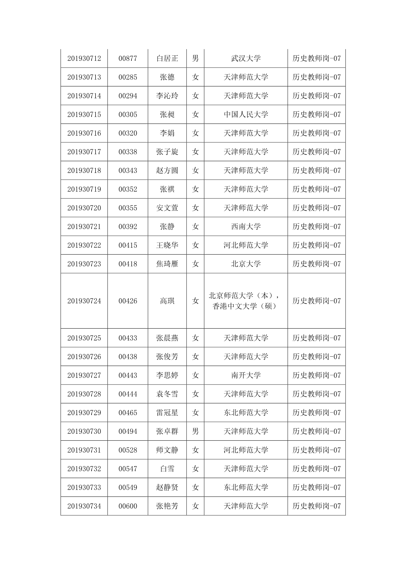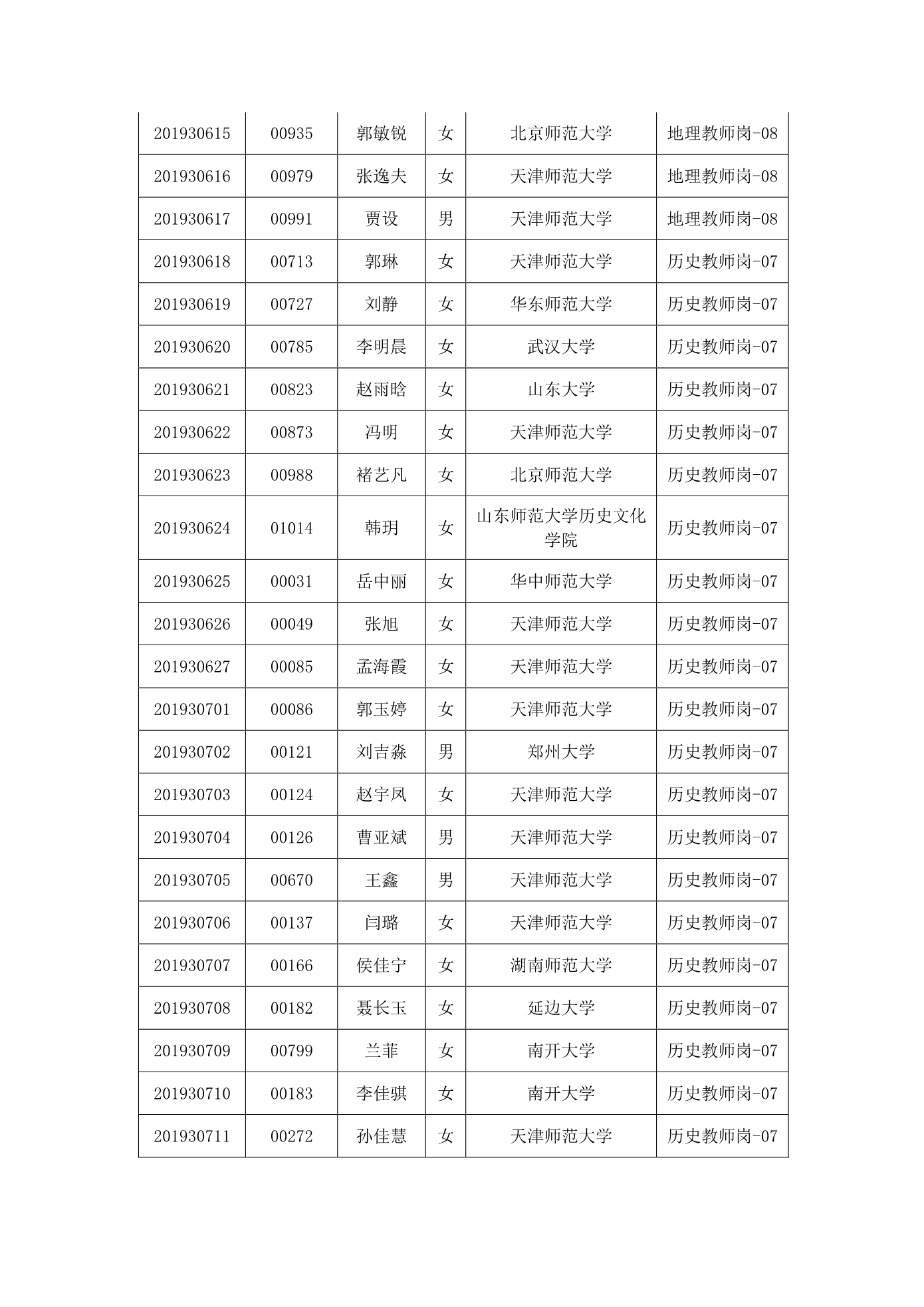 天津市第一中学2020年公开招聘参加笔试人员名单