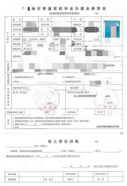 5.就业推荐表(根据每个区要求准备)