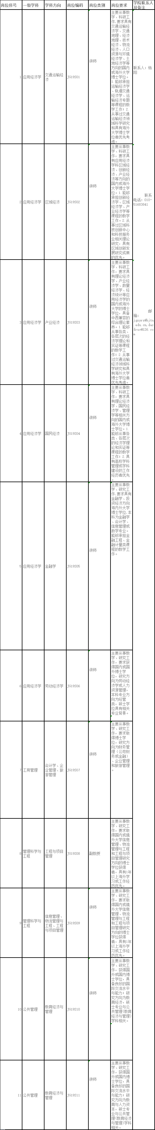 北京交通大学经济管理学院2020招聘信息