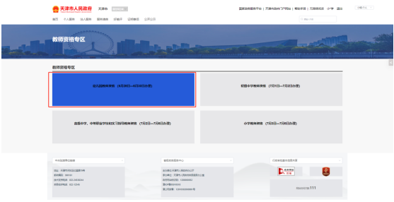 六、按照市教委公布的申报时段,选择办理对应的教师资格类型,如6月28日可申报幼儿园教师资格,点击进入