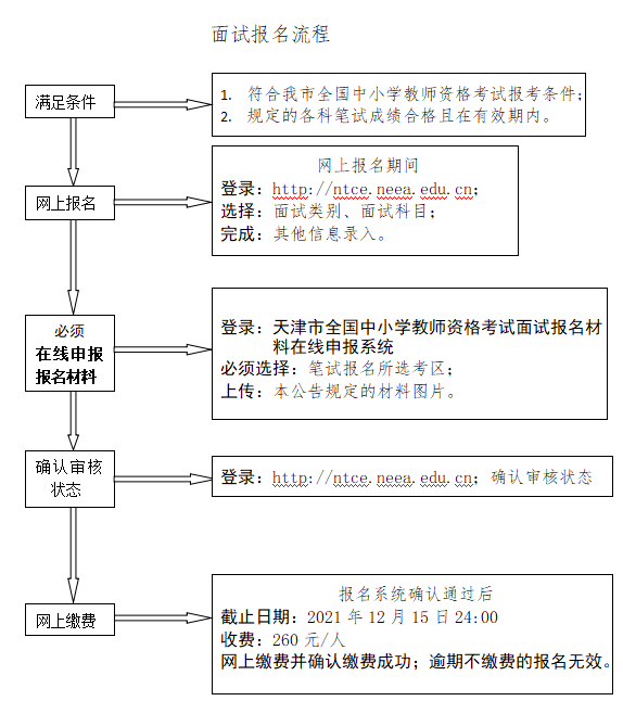(三)网上缴费。网上审核通过后,考生务必在规定时间内进行网上缴费,并确认缴费成功。根据津发改价费【2016】712号文件规定,我市全国中小学教师资格考试面试收费标准为:260元/每人。考生在网上缴费成功即视为本次考试报名完成。