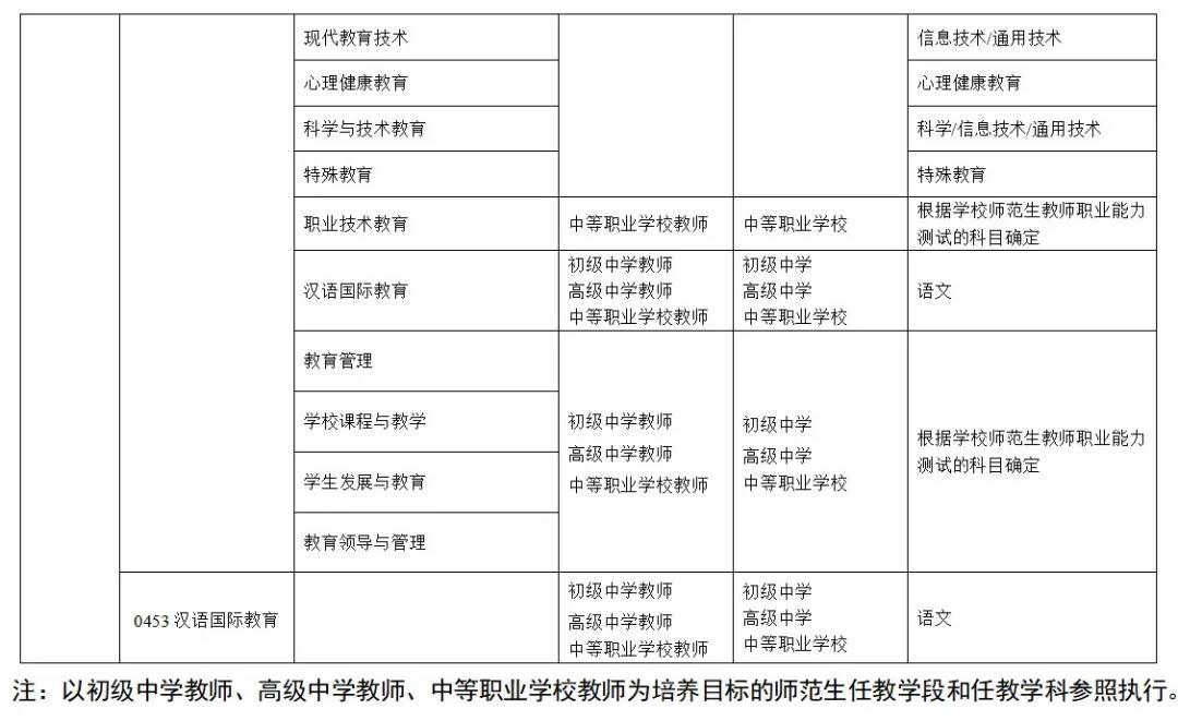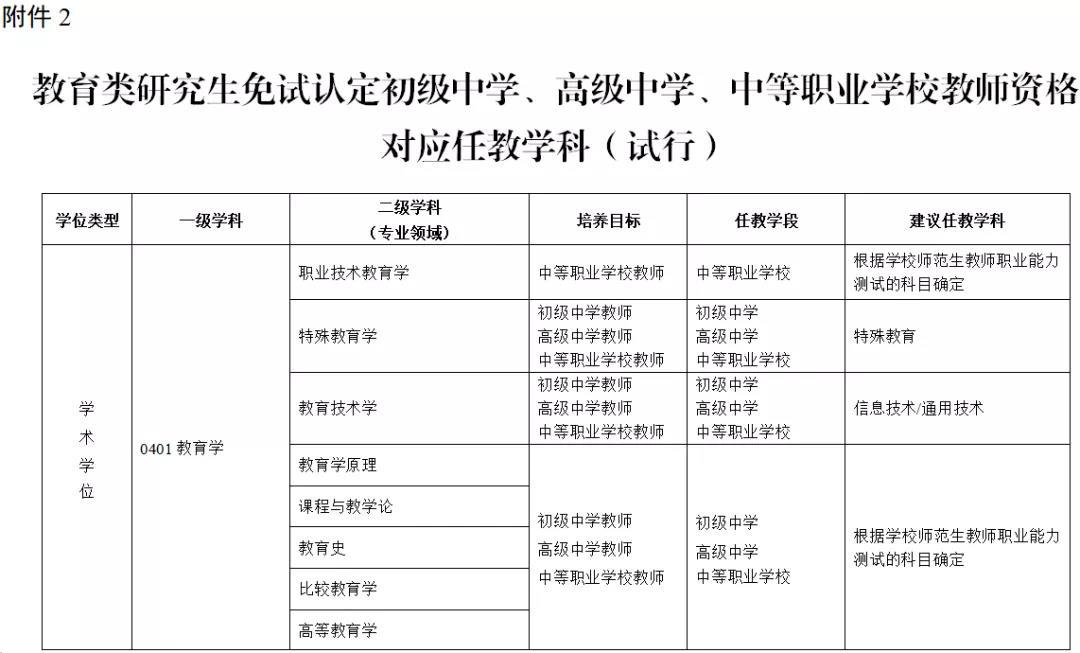 2. 教育类研究生免试认定初级中学教师、高级中学教师、中等职业学校教师资格对应任教学科(试行)