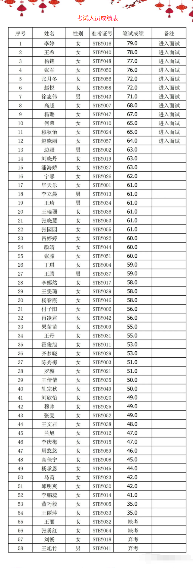 - 天津市便民专线服务中心2024年第一批合同制工公开招聘笔试成绩
