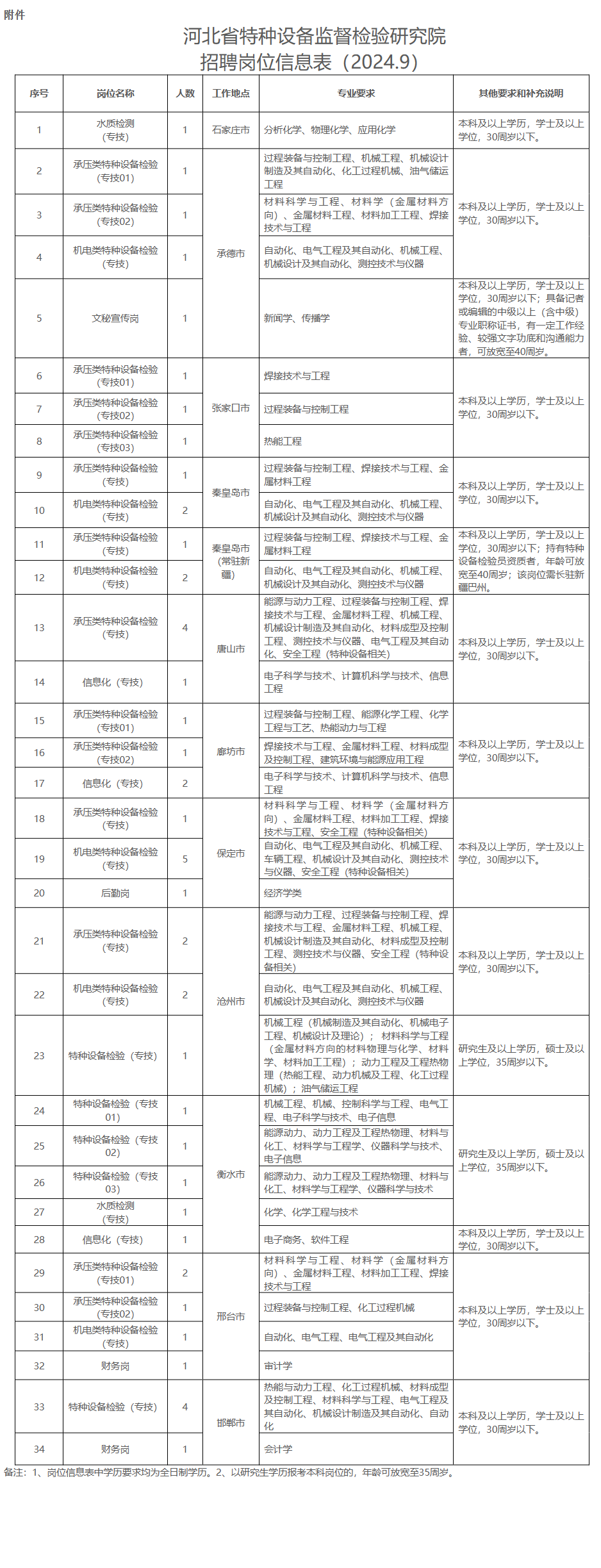 附件:河北省特种设备监督检验研究院2024年度招聘岗位信息表