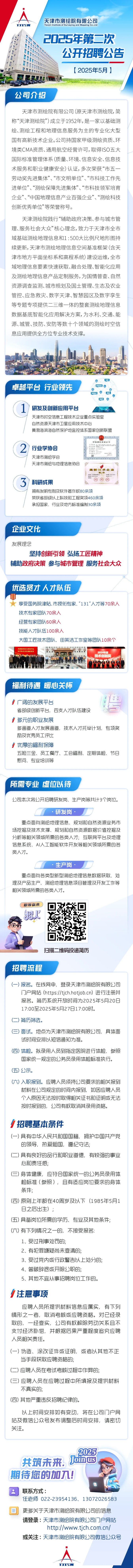 天津市测绘院有限公司2025年第二次公开招聘