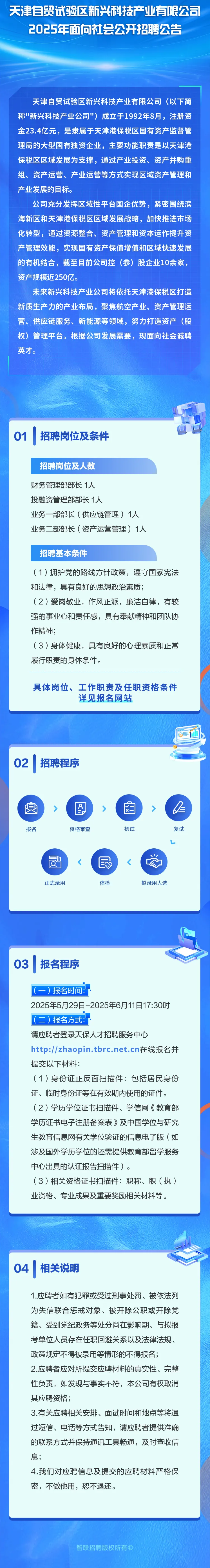 天津自贸试验区新兴科技产业有限公司2025年面向社会公开招聘公告