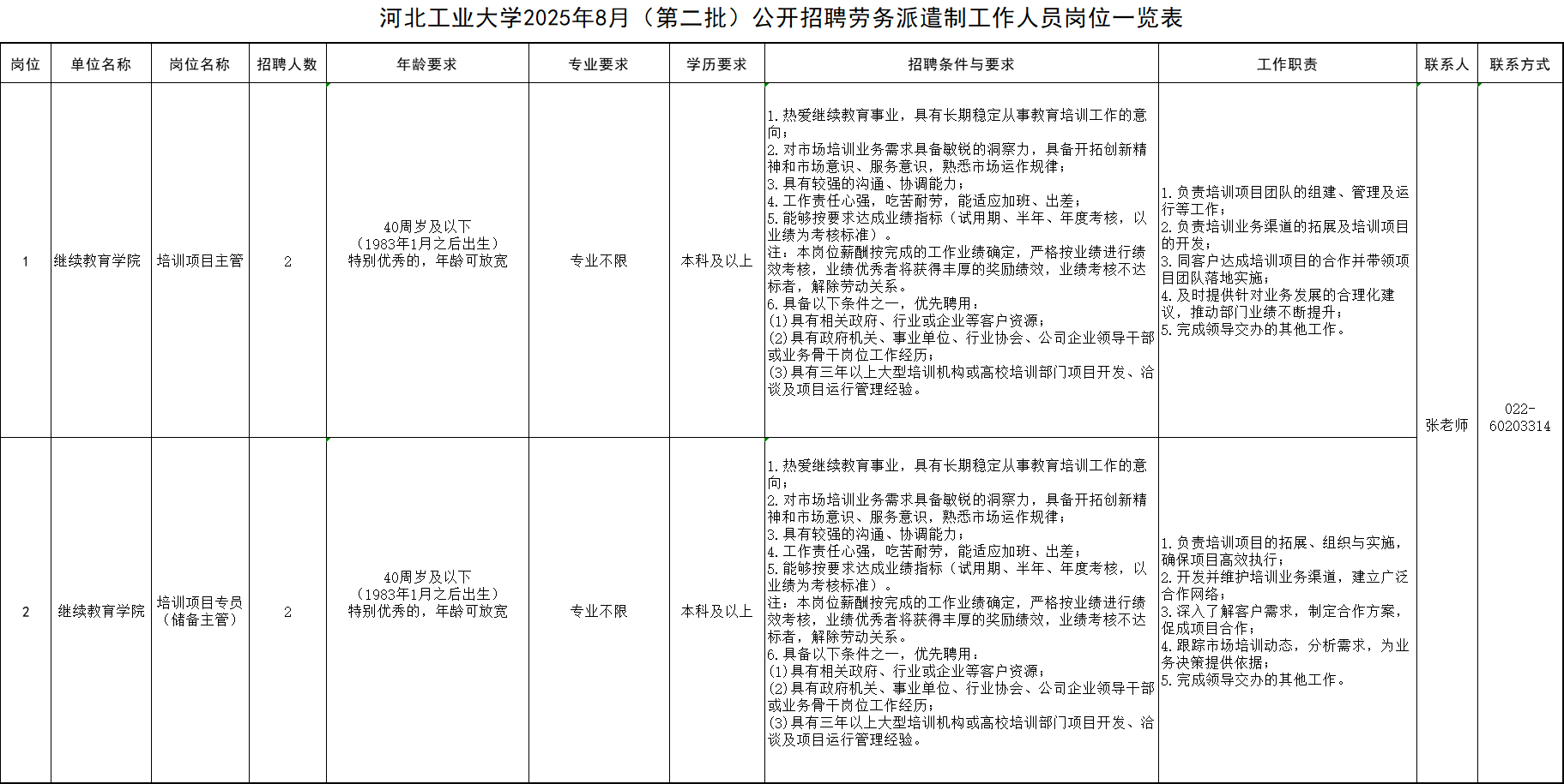 河北工业大学2025年8月(第二批)招聘劳务派遣制工作人员的公告