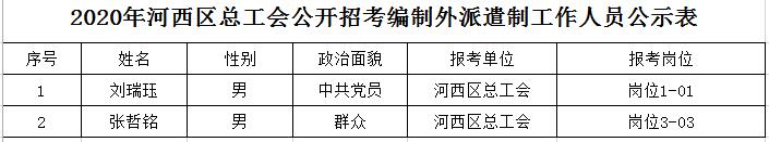 - 2020年河西区总工会公开招考编制外派遣制工作人员公示