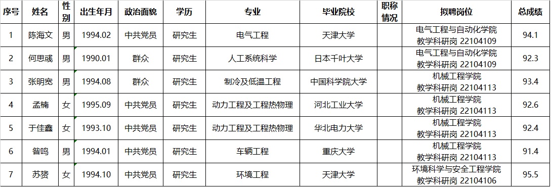 天津理工大学2022年公开招聘部分岗位拟聘人员公示20220803