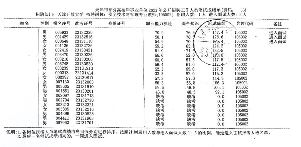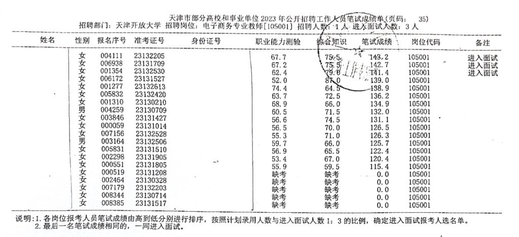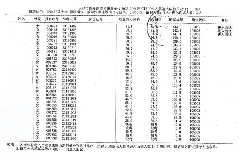 关于公布天津开放大学2023年公开招聘笔试成绩的通知