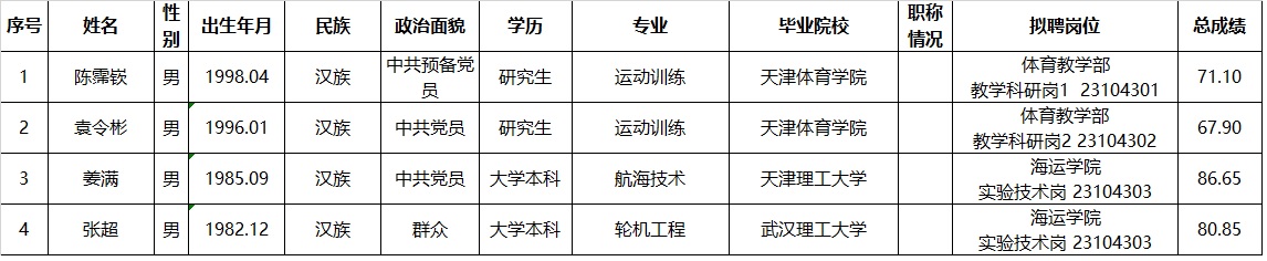 按照《天津市事业单位公开招聘人员实施办法(试行)》(津人社局发[2011]10号)要求,现将天津理工大学2023年公开招聘(硕士教师及其他专业技术岗)拟聘人员予以公示。