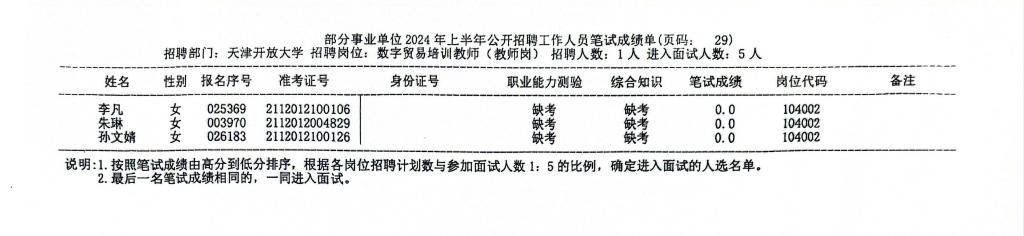 关于公布天津开放大学2024年第二批公开招聘笔试成绩的通知