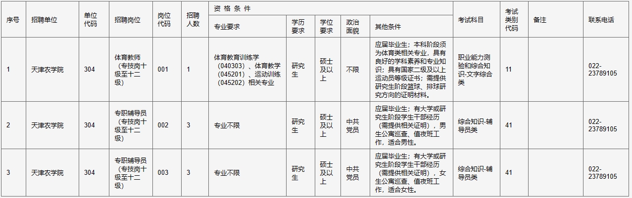 具体招聘岗位见《天津农学院2025年公开招聘专职辅导员、体育教师岗位进人计划表》。