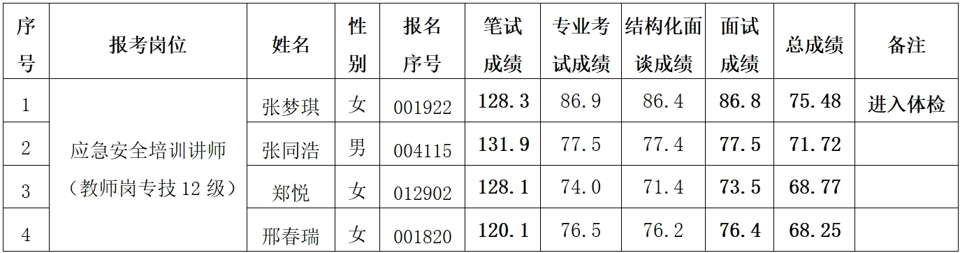 2、总成绩按笔试成绩(百分制,保留1位小数)和面试成绩各占50%的比例合成,保留2位小数。