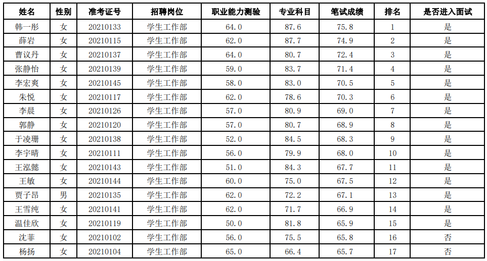 天津财经大学2020年第二批公开招聘硕士等人员笔试成绩单