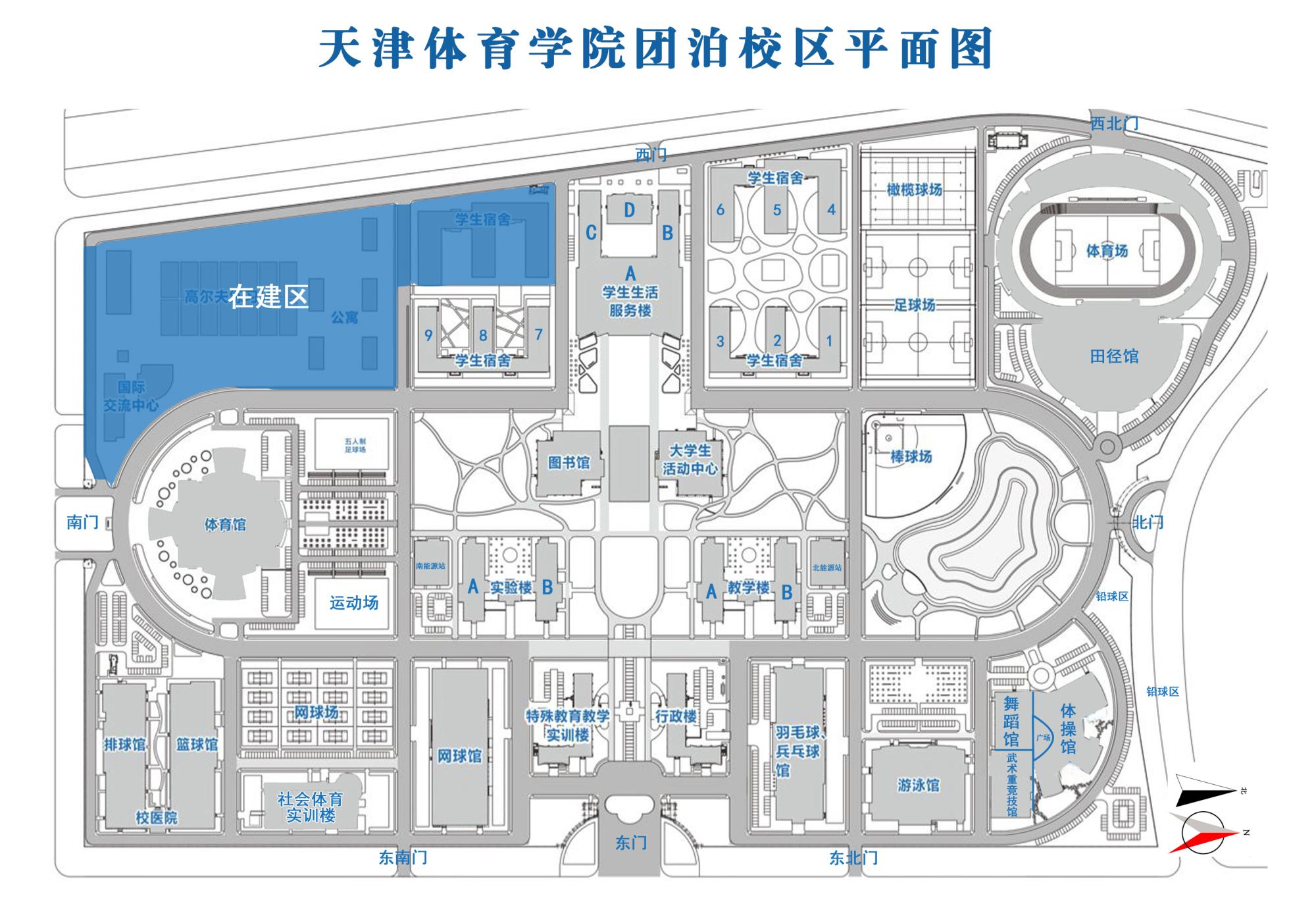 报考天津体育学院的考生考场设在天津体育学院团泊校区。请考生提前熟悉我校具体地理位置。(附件2.天津体育学院团泊校区平面图)