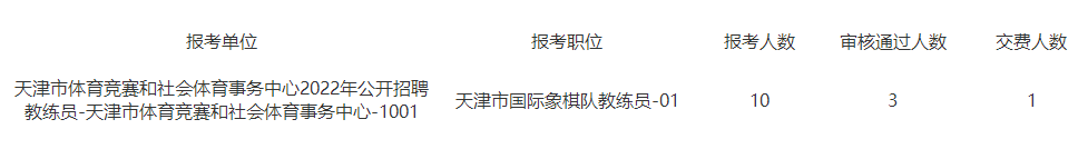 天津市体育竞赛和社会体育事务中心2022年公开招聘教练员报考情况统计(统计时间:2022年10月27日上午10点)