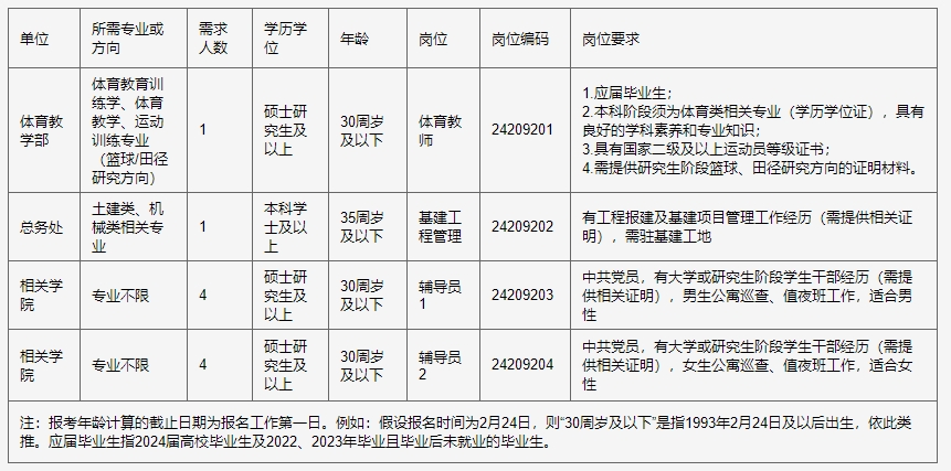 具体招聘岗位见《天津农学院2024年公开招聘专职辅导员、硕士教师和管理岗位进人计划表》。