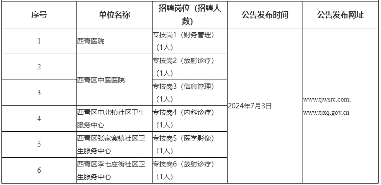天津市部分事业单位公开招聘信息6.24