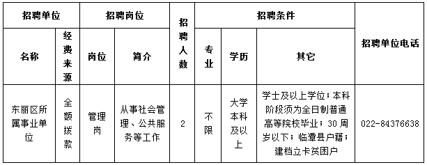 - 天津市东丽区自然资源调查与登记中心 2021年公开招聘事业单位