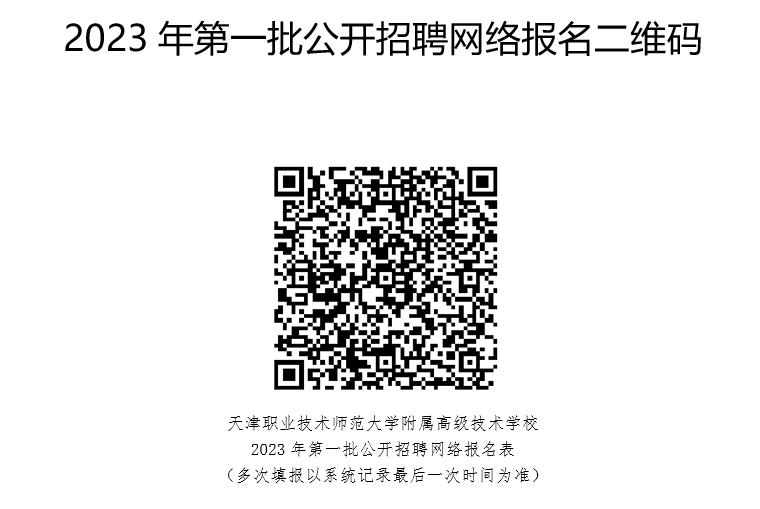 依据《天津市事业单位公开招聘人员实施办法》等有关文件要求,结合本单位人员需求实际情况,拟面向社会公开招聘教师岗位工作人员,现将有关事项公告如下: 一、学校基本情况 天津职业技术师范大学附属高级技术学校始建于1959年,现为天津职业技术师范大学附属单位,是一所以机、电类专业为主,具备中级工、高级工、技师、高级技师培养能力的中等职业学校。学校是国家级重点技工学校、天津市示范性中等职业学校、天津市示范性实训基地、国家中等职业教育改革发展示范学校和国家高技能人才培训基地、天津市中等职业学校提升办学能力建设项目单位、世界技能大赛机电一体化项目中国集训基地,承担世界技能大赛机电一体化项目参赛选手的选拔和集训任务。 二、招聘方案发布及岗位 公开招聘方案于2023年1月18日在天津市教委网站(http://jy.tj.gov.cn/)公开招聘专栏、天津职业技术师范大学网站(http://www.tute.edu.cn/)和天津职业技术师范大学附属高级技术学校网站(http://fsjx.tute.edu.cn/)上发布。 具体招聘岗位见《天津职业技术师范大学附属高级技术学校2023年第一批公开招聘岗位计划表》(见附件1)。 三、招聘人员条件 (一)应聘人员应当具备以下条件: 1.具有中华人民共和国国籍; 2.遵守宪法和法律; 3.具有良好的品行; 4.具有岗位所需要的专业或技能,参照教育部公布的普通高等学校专业目录、职业教育专业目录及人社部公布的技工院校专业目录;技工院校预备技师(技师)班毕业生与大学本科学历人员同等对待,高级工班毕业生与大学专科学历人员同等对待; 5.适应岗位要求的身体条件; 6.满足招聘计划表中要求的资格条件(见附件1),并具有相应的证明材料; 7.岗位要求是应届毕业生的,是指2023届高校毕业生,2021、2022年毕业后未就业高校毕业生视同为应届毕业生。实施应届毕业生学历证、学位证“容缺后补”机制,将核查毕业证、学位证的时间推迟到报到环节。届时,不能提供相关证件,取消其应聘资格; 8.对于国内高等院校自主设置的专业与海外留学归国人员所学专业,注重专业内容实质,此两类应聘人员的专业方向与所需专业方向要求一致视为符合专业条件。 (二)凡有下列情形之一的,不得报考: 1.曾因犯罪受过刑事处罚或曾被开除公职的人员; 2.正在接受立案审查的人员; 3.在公务员招考和事业单位公开招聘中被认定有作弊行为,在禁考期限内的人员; 4.全日制在读的非应届毕业生; 5.现役军人; 6.报考人员不得报考聘用后即构成回避关系的招聘岗位; 7.列为失信联合惩戒对象,被依法限制招聘为事业单位工作人员的; 8.法律规定不得聘用的其他情形的人员。 四、报名及资格审查等相关事项 按照《天津市事业单位公开招聘人员实施办法》等文件规定的程序开展招聘工作。 (一)报名 报名时间:2023年2月13日8:00至2月17日17:00 报名方式:报名人员可登陆天津职业技术师范大学附属高级技术学校网站(http://fsjx.tute.edu.cn/)扫描二维码,按要求填报相关信息。 网上报名填报内容作为招聘审核的重要依据,请务必由本人亲自按照要求逐项仔细填写。确保本人身份符合招聘岗位条件,所填信息真实有效,若在之后的环节中发现所填内容与招聘条件或事实材料不一致,则视为虚假信息,取消录用资格。每人只能应聘一个工作岗位,多报视为无效。如因个人原因填报错误,后果由报考人员自负。 报考人员应随时关注网站发布的消息并保持报名表中填写的手机号码畅通,如因个人原因未能参加考试或者现场资格审核所产生的后果由报考人员自负。 资格审查贯穿考录工作全过程。在考录各环节发现报考人员不符合报考资格条件的,均可取消报考人员报考资格或者聘用资格。 (二)资格初审 1.报名截止后的5个工作日内,学校根据报名人员递交的材料及岗位需求情况,对报名人员进行资格初审。 2.学校将以电话或短信形式通知初审结果,报名者也可通过学校网站查询审查结果。 3.招聘岗位人数与实际报名人数之比不低于1:3的,相应核减招聘计划或取消该岗位的招聘。 高技能人才专业技术岗位报考人员不受开考比例限制,不设笔试环节,报名成功后经现场资格复审符合条件的考生直接进入面试。考生须在指定时间先进行资格复审,通过资格复审的考生可在规定时间参加招聘。 4.报考未达到开考比例招聘计划被取消招聘的人员可在规定时间内改报其他符合条件的岗位。改报时间为2023年2月18日下午14:00-17:00。 (三)资格复审 进入面试程序的应聘者,在面试前,请按照通知指定的时间、地点,携所需证件材料原件及复印件进行资格复审。提供虚假信息或资料不全者或资格复审不合格的,一律取消面试资格。未按照规定时间、方式参加资格复审的,视为自动放弃面试资格。 资格复审具体时间地点将另行于学校网站(http://fsjx.tute.edu.cn/)通知。 资格复审材料: 1.公开招聘工作人员报名表(报名网站下载打印) 2.身份证(原件及复印件) 3.学历学位证书(原件及复印件),未取得毕业证、学位证的2023届高校毕业生,可提供《学籍在线验证报告》或提供可以证明本人为2023届高校毕业生的有效证明材料。 4.大专、本科及研究生阶段学历学位认证材料(学信网打印《教育部学历证书电子注册备案表》、学位网打印《教育部学位与研究生教育发展中心认证报告》),海外留学人员提供教育部留学服务中心出