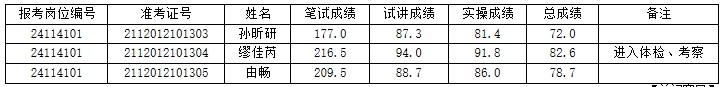 根据《天津职业技术师范大学2024年第一批公开招聘方案(硕士岗位)》,经资格初审、复审、笔试、面试等相关程序,确定考生缪佳芮进入体检、考察阶段,体检、考察具体安排另行电话通知。
