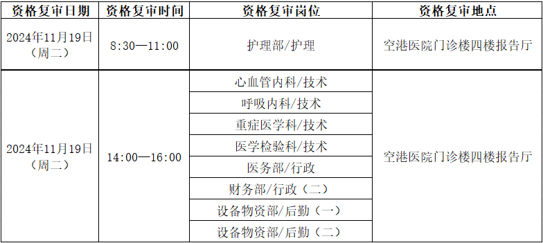 天津医科大学总医院空港医院2024年公开招聘资格复审工作安排