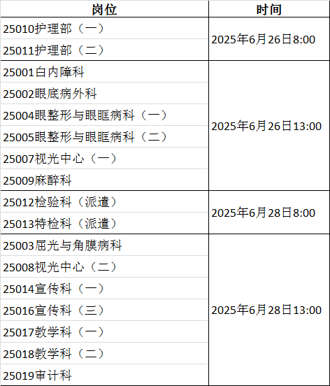 根据《天津医科大学眼科医院2025年自主招聘实施方案》要求,结合招聘工作进程,现发布我院2025年自主招聘资格复审及面试安排。