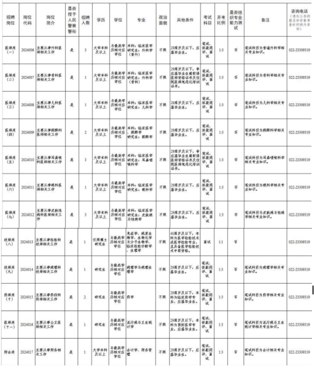天津市公安医院 2024 年度公开招聘工作人员,具体方案如下: