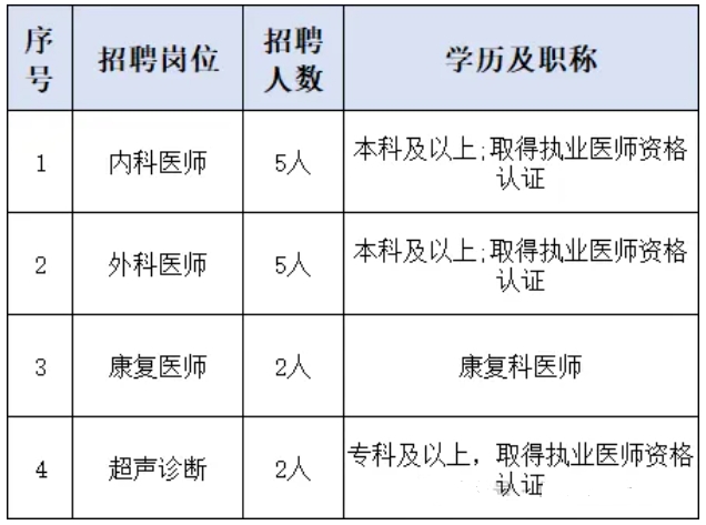 (二)学历及年龄:所有岗位取得学历均为国家计划内统招全日制高校本科、专科毕业生。注:有在二级及以上医院工作经历、有五年以上工作经验的、能独立值班的应聘者可放宽要求。
