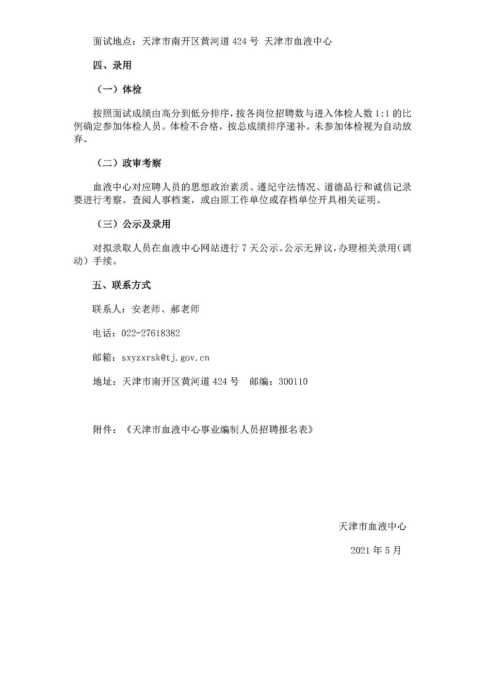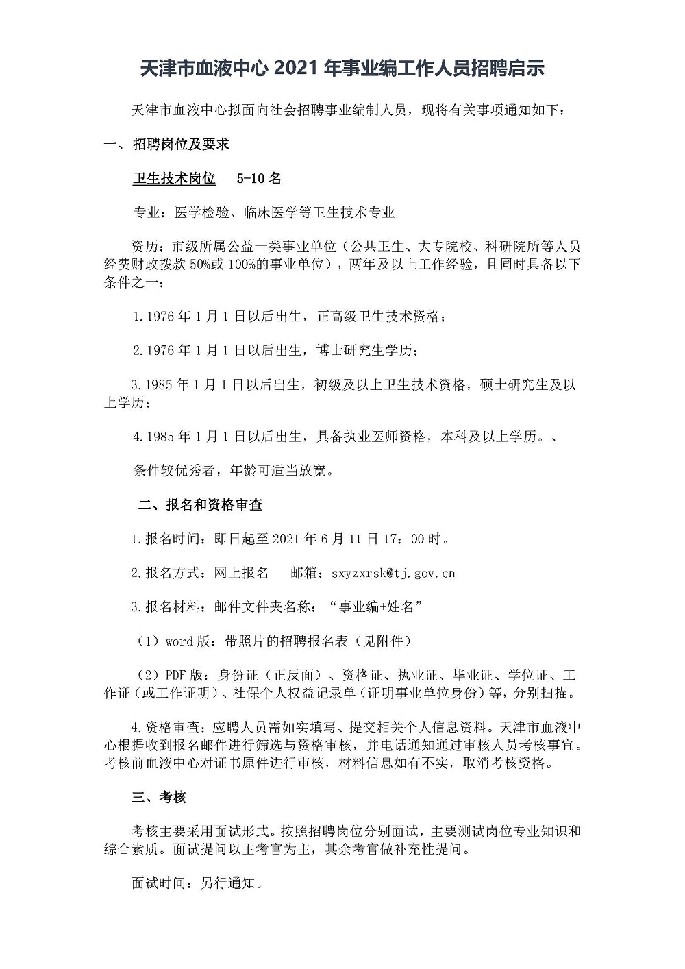 天津市血液中心2021年事业编工作人员招聘启示