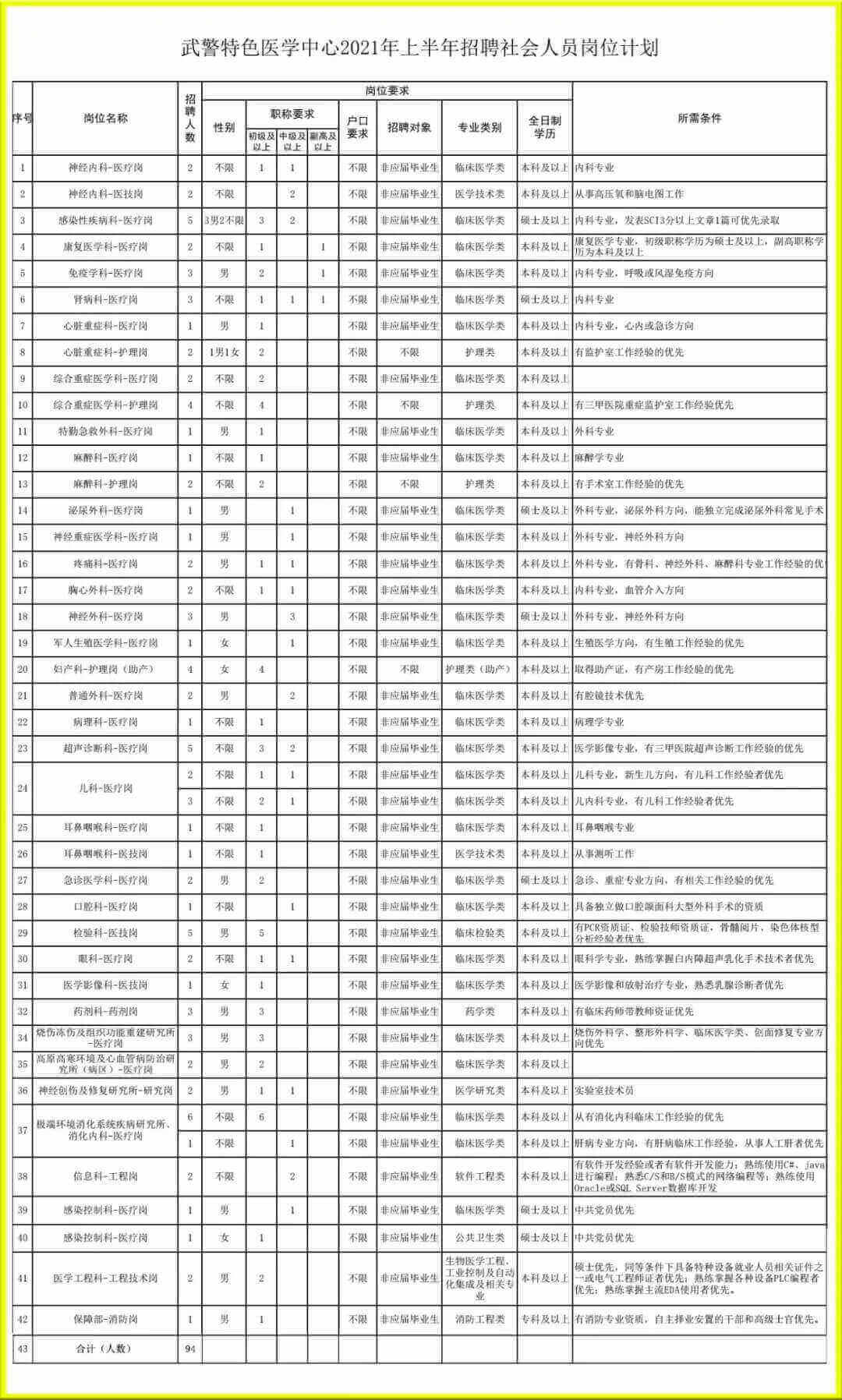 附件:《武警特色医学中心2021年上半年招聘社会人员岗位计划》