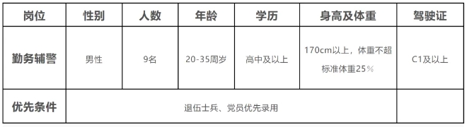 衡水众恒劳务派遣有限公司接受景县公安交通警察大队的委托,依据《河北省公安机关警务辅助⼈员管理条例》、《衡水市公安机关警务辅助人员管理办法》,参照《公安机关录用人民警察体检项目和标准》等相关规定,结合实际用人需求,面向社会公开招聘警务辅助人员9名。具体招聘事宜如下: