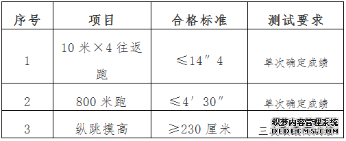 体能测试项目及合格标准如下: